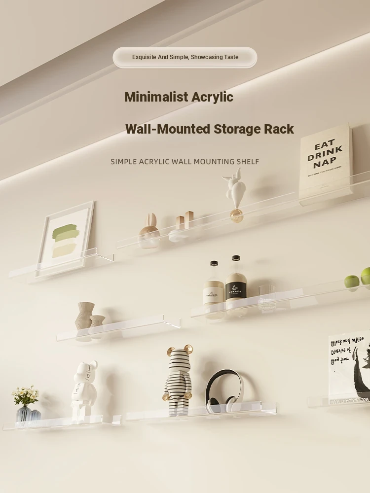Creative Acrylic Wall-Mounted Display Shelf - Stylish Horizontal Divider for Home, Bedroom, and Study Wall Storage Solution